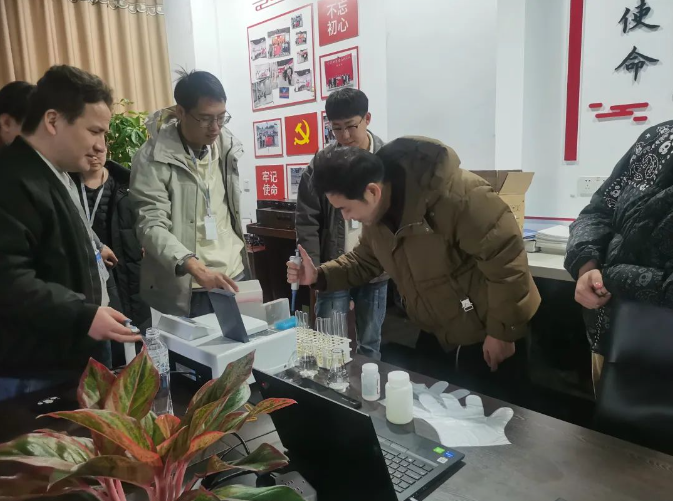 內(nèi)訓(xùn)師以淺顯易懂的方式介紹了污水污染物常規(guī)檢測(cè)的各種方法,在活動(dòng)現(xiàn)場(chǎng)進(jìn)行了RAS循環(huán)水養(yǎng)殖尾水水質(zhì)簡(jiǎn)易檢測(cè)的實(shí)操活動(dòng),并且與參會(huì)人員積極互動(dòng),帶領(lǐng)他們上手實(shí)踐,加深了技術(shù)人員對(duì)RAS循環(huán)水養(yǎng)殖尾水水質(zhì)檢測(cè)的理解。