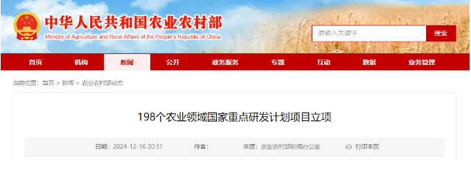 農(nóng)業(yè)農(nóng)村部深入學(xué)習(xí)貫徹習(xí)近平總書記重要指示批示精神和黨中央、國(guó)務(wù)院決策部署,認(rèn)真落實(shí)全國(guó)科技大會(huì)精神,在科技部的指導(dǎo)下,不斷改進(jìn)科技計(jì)劃管理,探索和實(shí)踐具有農(nóng)業(yè)特色的產(chǎn)業(yè)科技組織模式,加快推進(jìn)高水平農(nóng)業(yè)科技自立自強(qiáng)。近期,農(nóng)業(yè)農(nóng)村部組織開展了主責(zé)的國(guó)家重點(diǎn)研發(fā)計(jì)劃重點(diǎn)專項(xiàng)(以下簡(jiǎn)稱“重點(diǎn)專項(xiàng)”)2024年度項(xiàng)目立項(xiàng)工作,“主要作物豐產(chǎn)增效科技創(chuàng)新工程”等14個(gè)重點(diǎn)專項(xiàng)立項(xiàng)了198個(gè)項(xiàng)目。