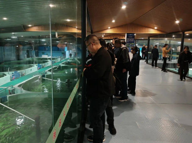 第五屆工業(yè)化循環(huán)水養(yǎng)殖技術(shù)培訓(xùn)班一行參觀微山湖超級漁倉車間