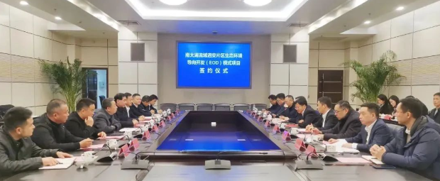 簽約儀式上,長(zhǎng)興縣人民政府代表與葛洲壩生態(tài)環(huán)保公司、葛洲壩生態(tài)環(huán)保公司所屬生態(tài)建設(shè)公司、浙江商達(dá)公用集團(tuán)有限公司、長(zhǎng)興富美城鄉(xiāng)環(huán)境治理有限公司、中國公路工程咨詢集團(tuán)有限公司共同簽署長(zhǎng)興南太湖流域泗安片區(qū)生態(tài)環(huán)境導(dǎo)向開發(fā)EOD項(xiàng)目投資合作協(xié)議。