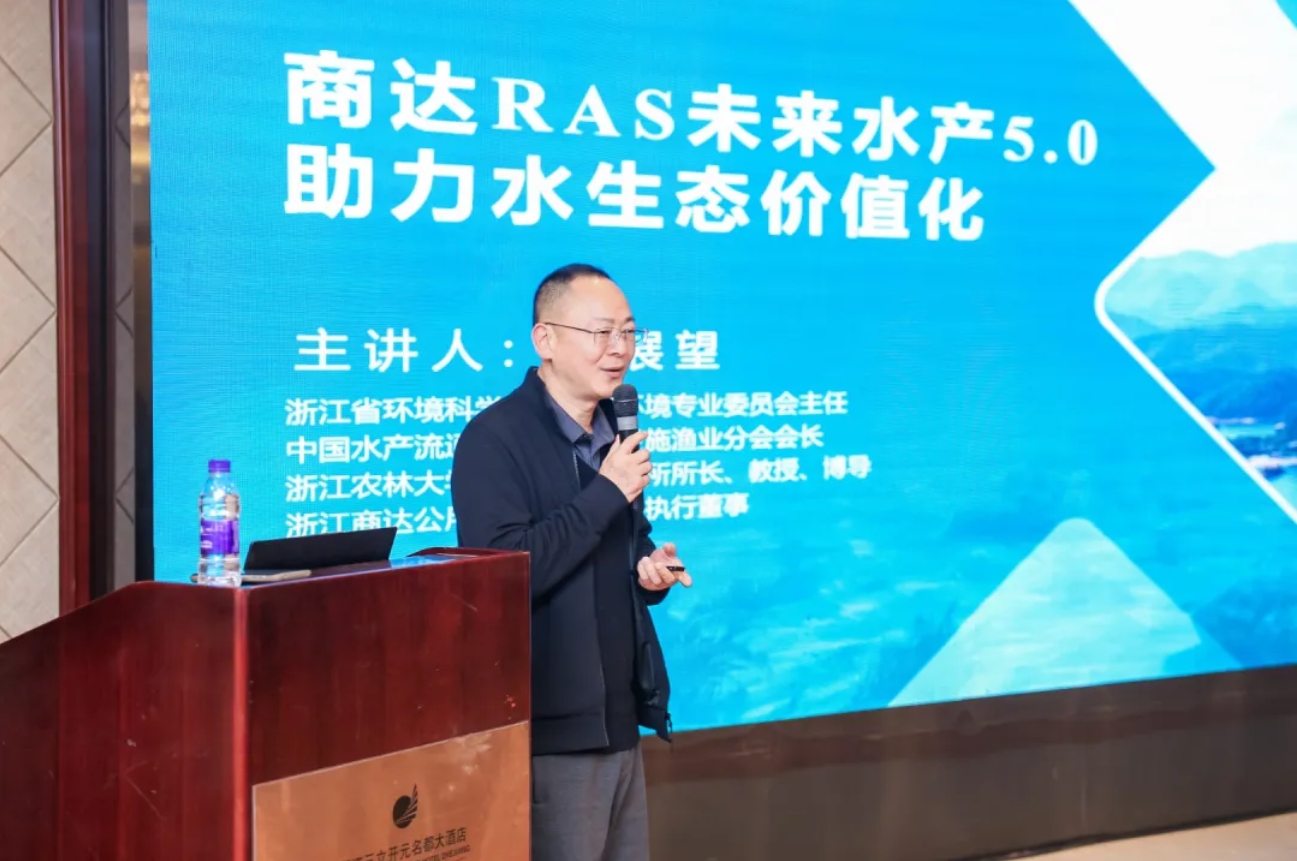 鄭展望教授在報(bào)告中系統(tǒng)地闡述了以BT生物技術(shù)+IT信息技術(shù)+FT食品技術(shù)的“3T融合”為核心的商達(dá)公用RAS未來(lái)水產(chǎn)5.0技術(shù)體系,其通過(guò)循環(huán)水系統(tǒng)可實(shí)現(xiàn)水資源近零消耗,單位水體產(chǎn)量提升50-100倍,勞動(dòng)生產(chǎn)效率提高6-15倍。同時(shí),通過(guò)AI智能管控、無(wú)抗養(yǎng)殖體系、尾水生態(tài)處理等技術(shù),實(shí)現(xiàn)魚(yú)品安全可追溯、水資源循環(huán)利用。以浙江嘉善西塘共富漁倉(cāng)為例,通過(guò)“持股飛田”模式帶動(dòng)200人就業(yè),年共富收益達(dá)500萬(wàn)元。