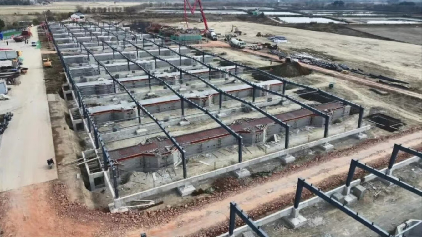 項(xiàng)目自今年下半年正式開工以來,建設(shè)進(jìn)程高效推進(jìn),目前,1號車間基礎(chǔ)施工已完成90%,2號車間基礎(chǔ)施工完成80%,正同步開展鋼結(jié)構(gòu)安裝作業(yè);3號、4號、5號車間養(yǎng)殖區(qū)則已提前完成鋼結(jié)構(gòu)安裝,現(xiàn)階段重點(diǎn)推進(jìn)水處理區(qū)微濾池底板澆筑及模板支設(shè)工作,為后續(xù)設(shè)備安裝奠定基礎(chǔ)。