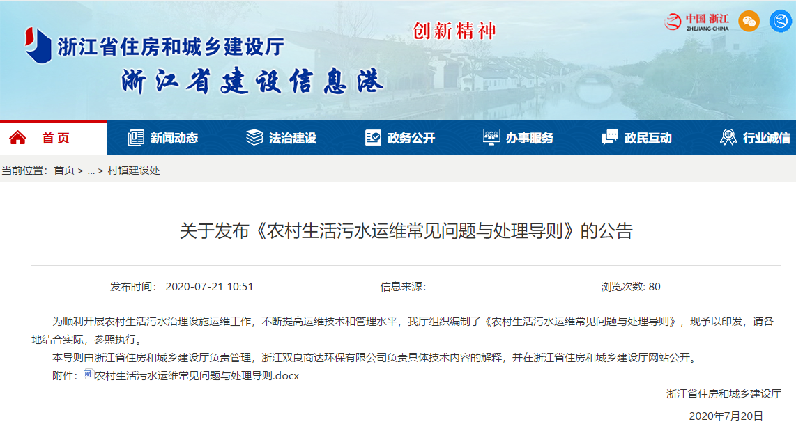 為加強(qiáng)農(nóng)村生活污水治理設(shè)施運(yùn)行維護(hù)管理,改善農(nóng)村人居環(huán)境,切實(shí)發(fā)揮縣(市、區(qū))“五位一體”的各方主體作用,規(guī)范縣(市、區(qū))農(nóng)村生活污水治理設(shè)施運(yùn)行維護(hù)各方的管理要求,由浙江省住房和城鄉(xiāng)建設(shè)廳提出,雙良商達(dá)等單位參與編寫(xiě)的《浙江省縣(市、區(qū))農(nóng)村生活污水治理設(shè)施運(yùn)行維護(hù)管理導(dǎo)則》已于2017年發(fā)布。
