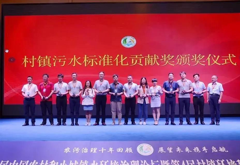 右五為雙良商達領(lǐng)獎代表在第10屆中國農(nóng)村和小城鎮(zhèn)水環(huán)境治理論壇暨第4屆村鎮(zhèn)環(huán)境科技產(chǎn)業(yè)聯(lián)盟論壇”上,雙良商達榮獲“村鎮(zhèn)污水標準化貢獻獎”。