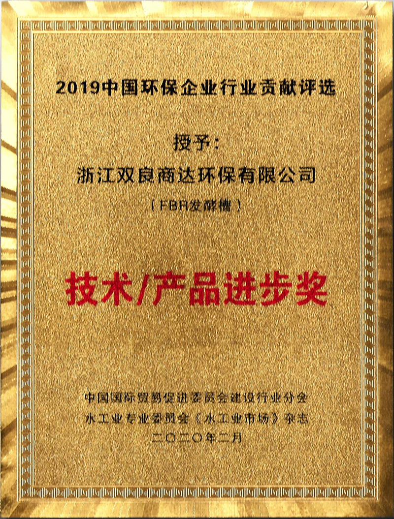 2020年1月,由《水工業(yè)市場》雜志發(fā)起的“2019中國環(huán)保企業(yè)行業(yè)貢獻評選”活動落下帷幕。雙良商達FBR發(fā)酵槽產(chǎn)品榮獲“2019中國環(huán)保企業(yè)行業(yè)貢獻評選——技術(shù)/產(chǎn)品進步獎”,這是FBR發(fā)酵槽技術(shù)產(chǎn)品連續(xù)5年獲得行業(yè)認可。