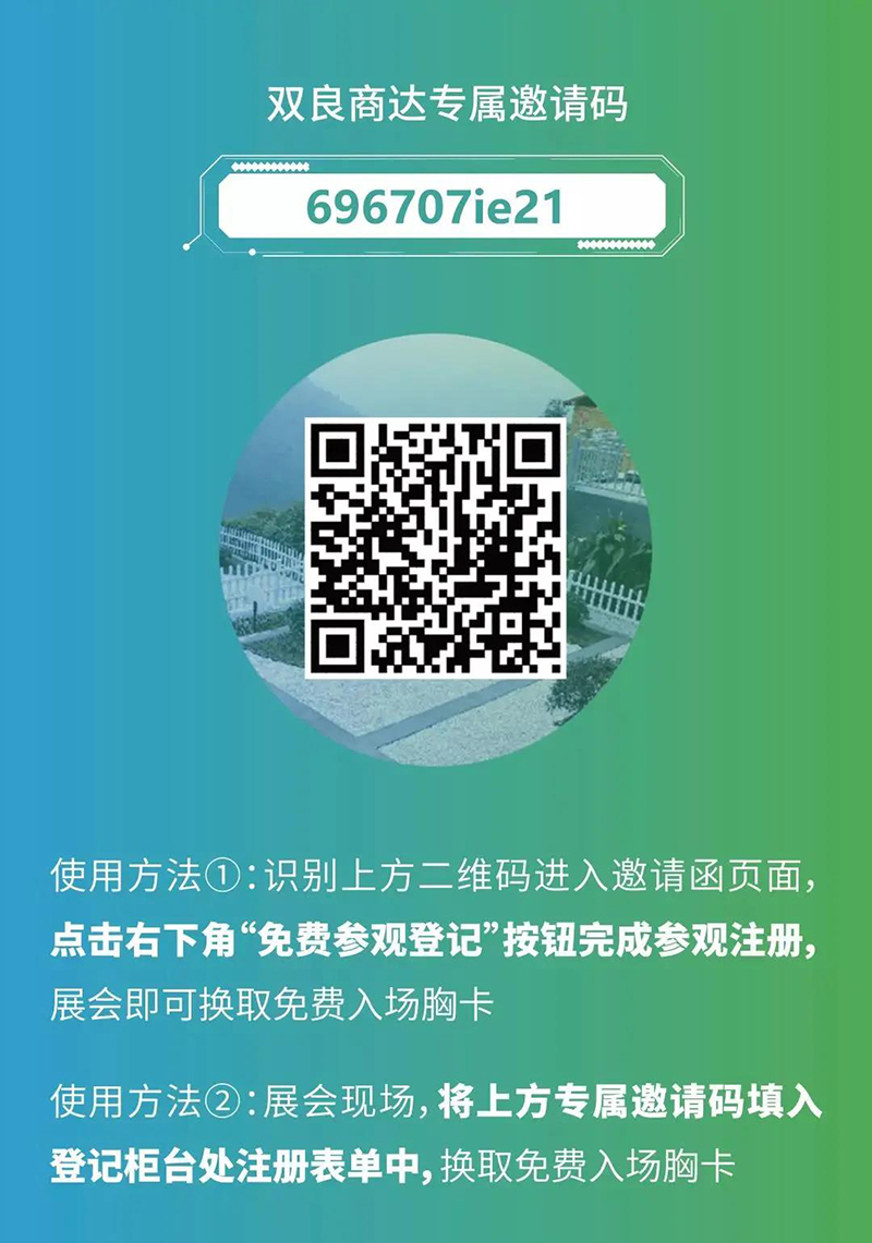 展會(huì)期間,使用雙良商達(dá)專屬邀請(qǐng)碼可免30元/人門票費(fèi)。