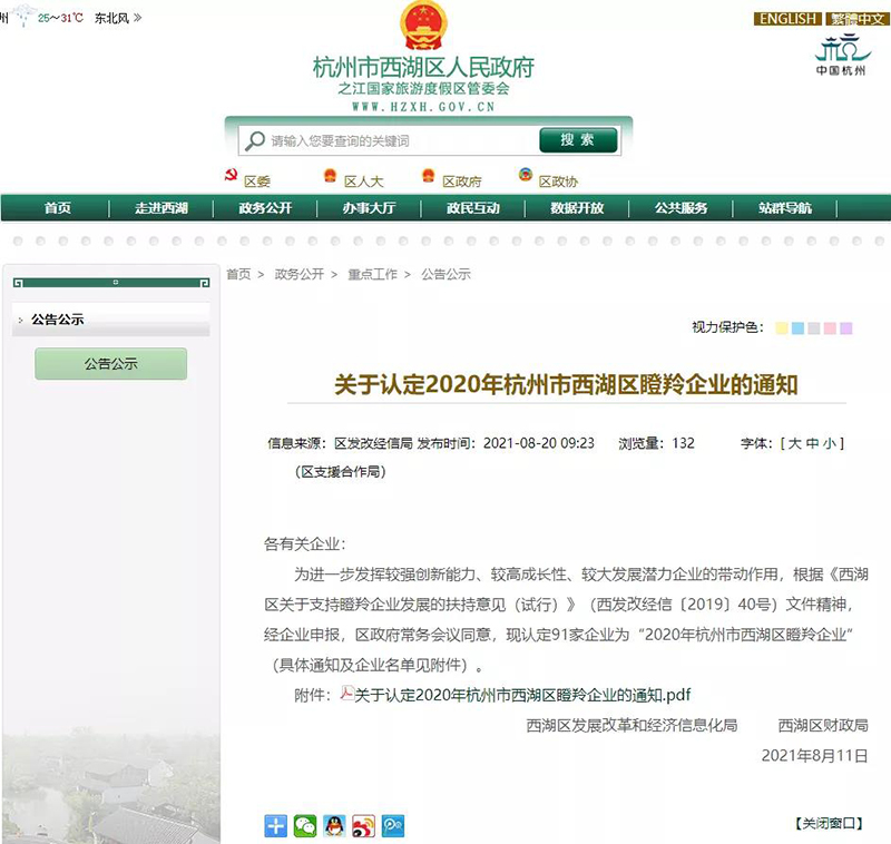 為進一步發(fā)揮較強創(chuàng)新能力,較高成長性、較大發(fā)展?jié)摿Φ钠髽I(yè)帶動作用,更好地樹立企業(yè)示范創(chuàng)新,近日,杭州西湖區(qū)發(fā)展改革和經濟信息化局、西湖區(qū)財政局公布了2020年度杭州市西湖區(qū)“瞪羚企業(yè)”認定榜單,雙良商達入選該榜單。