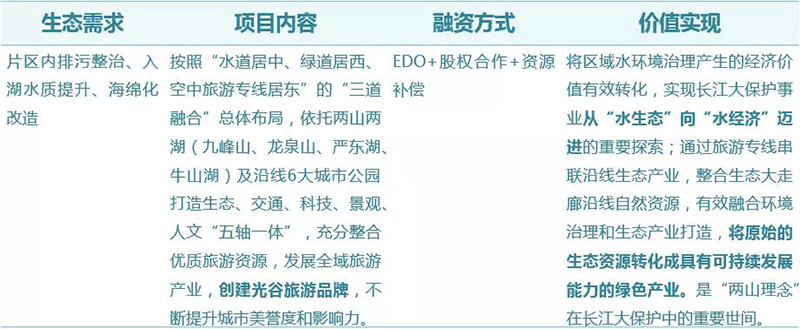 網(wǎng)絡(luò)熱播電視劇《人民的名義》中,有一個(gè)官方范本。劇中講了一個(gè)達(dá)康書記,將林城煤塌陷區(qū)改造成濕地公園和開發(fā)區(qū),最終造福一方的故事。事實(shí)上,這個(gè)故事是有原型的:即江蘇省徐州市的潘安湖國家濕地公園。2010年起當(dāng)?shù)赝ㄟ^“挖深填淺、分層剝離、交錯(cuò)回填”等技術(shù)改造塌陷區(qū),恢復(fù)土地生態(tài)調(diào)節(jié)功能,同時(shí)建起了濕地公園景觀,接著又規(guī)劃了污水廠、交通路線、幼兒園、醫(yī)院等配套設(shè)施,打造集康養(yǎng)、休閑旅游、電子商務(wù)、高端住宅于一體的現(xiàn)代生態(tài)新城,實(shí)現(xiàn)了從一城煤灰半城土到一城青山半城湖的轉(zhuǎn)變。理論模式結(jié)合實(shí)際,接下來分享一些EOD案例。英國政治家約翰·伯恩斯曾說,泰晤士河是世界上最優(yōu)美的河流,“因?yàn)樗且徊苛鲃?dòng)的歷史”。作為倫敦最佳視野的所在,泰晤士河整個(gè)濱水公共空間與生態(tài)、商業(yè)、休閑、會(huì)展、博覽等多種城市功能混合交織,這些使得泰晤士河不僅最終成為城市的視線景觀軸,也成為的城市重要的空間發(fā)展軸。二、國內(nèi)首個(gè)流域生態(tài)環(huán)境治理的EOD項(xiàng)目薊運(yùn)河(薊州段)全域水系治理、生態(tài)修復(fù)、環(huán)境提升及產(chǎn)業(yè)綜合開發(fā)EOD項(xiàng)目。該項(xiàng)目的創(chuàng)新性在于在國內(nèi)首次將EOD模式應(yīng)用到整個(gè)流域生態(tài)環(huán)境治理中,積極踐行“生態(tài)優(yōu)先、綠色發(fā)展”的理念,是“綠水青山就是金山銀山”理論對(duì)生態(tài)價(jià)值轉(zhuǎn)化路徑的探索。項(xiàng)目工期為20年,中標(biāo)額約為65億元。已順利確定了社會(huì)資本方,進(jìn)入項(xiàng)目執(zhí)行階段。三、240億元投資的三峽集團(tuán)首個(gè)EOD項(xiàng)目2019年9月,長江環(huán)保集團(tuán)與東湖高新區(qū)正式簽訂戰(zhàn)略合作協(xié)議,確定采用“廠網(wǎng)河湖岸+生態(tài)產(chǎn)業(yè)”方式開展全域合作。目前,長江環(huán)保集團(tuán)已按照協(xié)議約定完成全區(qū)“三水共治”規(guī)劃及實(shí)施方案,策劃項(xiàng)目總投資約240億元。在為東湖高新區(qū)做好全域水環(huán)境規(guī)劃的同時(shí),長江環(huán)保集團(tuán)積極拓展環(huán)保領(lǐng)域相關(guān)業(yè)務(wù),在地方政府的委托下開展實(shí)施其最為關(guān)注的生態(tài)環(huán)境治理項(xiàng)目——光谷生態(tài)大走廊項(xiàng)目。四、四川片區(qū)綜合開發(fā)典例——程度懷州新城楊溪湖濕地公園楊溪湖濕地公園項(xiàng)目是成都以EOD為導(dǎo)向的沱江發(fā)展軸片區(qū)綜合開發(fā)的重要項(xiàng)目之一。該項(xiàng)目作為成都平原東北生態(tài)帶的第一門戶,充分利用所在地勢地貌,打造出了最具“川東淺丘梯田濕地典范”,將為推動(dòng)成渝地區(qū)雙城經(jīng)濟(jì)圈建設(shè)注入更多生態(tài)活力。未來,成都國際職教城、通用航空機(jī)場、精品酒店、綜合醫(yī)院、商業(yè)配套等都將沿湖布局。而該項(xiàng)目正是國際熱門的EOD模式的生動(dòng)范例。五、江蘇打造涵蓋20萬噸全地下水質(zhì)凈化廠的試點(diǎn)項(xiàng)目循環(huán)經(jīng)濟(jì)產(chǎn)業(yè)園項(xiàng)目位于蘇州科技城,占地規(guī)模385畝,將涵蓋20萬噸全地下水質(zhì)凈化廠、生態(tài)公園、循環(huán)經(jīng)濟(jì)產(chǎn)業(yè)園等建設(shè)內(nèi)容,總投資規(guī)模約50億元。六、山東日照水庫流域生態(tài)保護(hù)與產(chǎn)業(yè)開發(fā)項(xiàng)目(2021國家級(jí)試點(diǎn))實(shí)施以水質(zhì)提升為目標(biāo)的生態(tài)環(huán)境治理工程。對(duì)入庫水質(zhì)實(shí)施在線監(jiān)測,重點(diǎn)實(shí)施項(xiàng)目區(qū)內(nèi)村莊搬遷、入庫河口固體廢物攔截、陳疃河濕地和銓元河濕地修復(fù)等生態(tài)環(huán)境治理工程,提升水庫流域生態(tài)系統(tǒng)的凈化能力,打造水庫生態(tài)屏障圈。