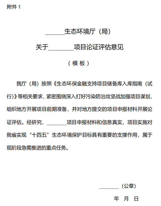 (三)省級生態(tài)環(huán)境部門項(xiàng)目論證評估意見(模板見附件1)。