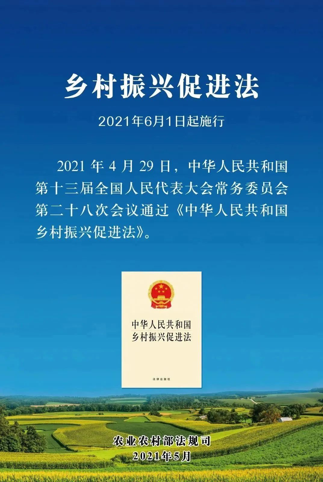 《中華人民共和國鄉(xiāng)村振興促進法》(簡稱《鄉(xiāng)村振興促進法》)于2021年4月29日在第十三屆全國人民代表大會常務(wù)委員會第二十八次會議上正式審通過,并從2021年6月1日起正式施行。