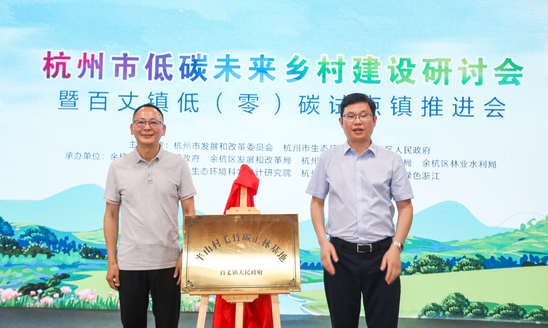 本次活動(dòng)由杭州市發(fā)展和改革委員會(huì)、杭州市生態(tài)環(huán)境局、余杭區(qū)人民政府主辦,百丈鎮(zhèn)人民政府、余杭區(qū)發(fā)展和改革局、杭州市生態(tài)環(huán)境局余杭分局、余杭區(qū)林業(yè)水利局等共同承辦。來(lái)自省市區(qū)低碳領(lǐng)域的專家、高校學(xué)者參與了現(xiàn)場(chǎng)討論,并針對(duì)低(零)碳試點(diǎn)鄉(xiāng)鎮(zhèn)具體工作進(jìn)行了研討。浙江農(nóng)林大學(xué)農(nóng)村環(huán)境研究所所長(zhǎng)鄭展望教授受邀參會(huì)并為百丈鎮(zhèn)半山村竹林碳匯基地揭牌。