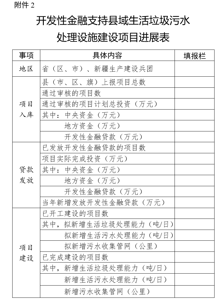 2.開發(fā)性金融支持縣域生活垃圾污水處理設(shè)施建設(shè)項目進(jìn)展表