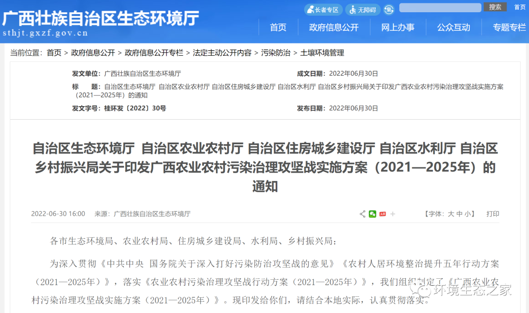 治理農(nóng)業(yè)農(nóng)村污染是深入打好污染防治攻堅戰(zhàn)的重要任務(wù),是實施鄉(xiāng)村振興戰(zhàn)略的重要舉措,對推動農(nóng)業(yè)農(nóng)村綠色低碳發(fā)展、履行生物多樣性公約、加強農(nóng)村生態(tài)文明建設(shè)具有重要意義。為貫徹落實《中共中央 國務(wù)院關(guān)于深入打好污染防治攻堅戰(zhàn)的意見》《農(nóng)村人居環(huán)境整治提升五年行動方案(2021—2025年)》,加快解決農(nóng)業(yè)農(nóng)村突出環(huán)境問題,制定本行動方案。