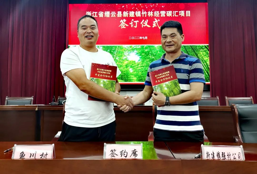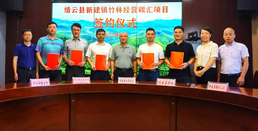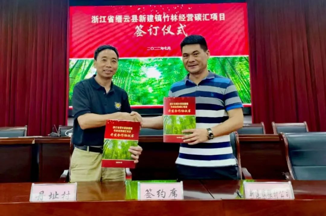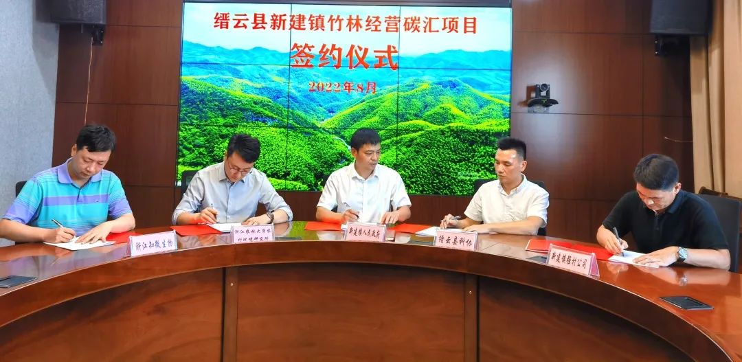 8月5日,縉云縣新建鎮(zhèn)首期4萬畝竹林經(jīng)營碳匯項目開發(fā)合作協(xié)議成功簽署。縉云縣科學技術(shù)協(xié)會、新建鎮(zhèn)人民政府,新建鎮(zhèn)強村公司、浙江農(nóng)林大學農(nóng)村環(huán)境研究所、浙江知溦生物科技有限公司單位參加簽約儀式,協(xié)議的簽署標志著縉云縣首個竹林碳匯項目成功落地新建。