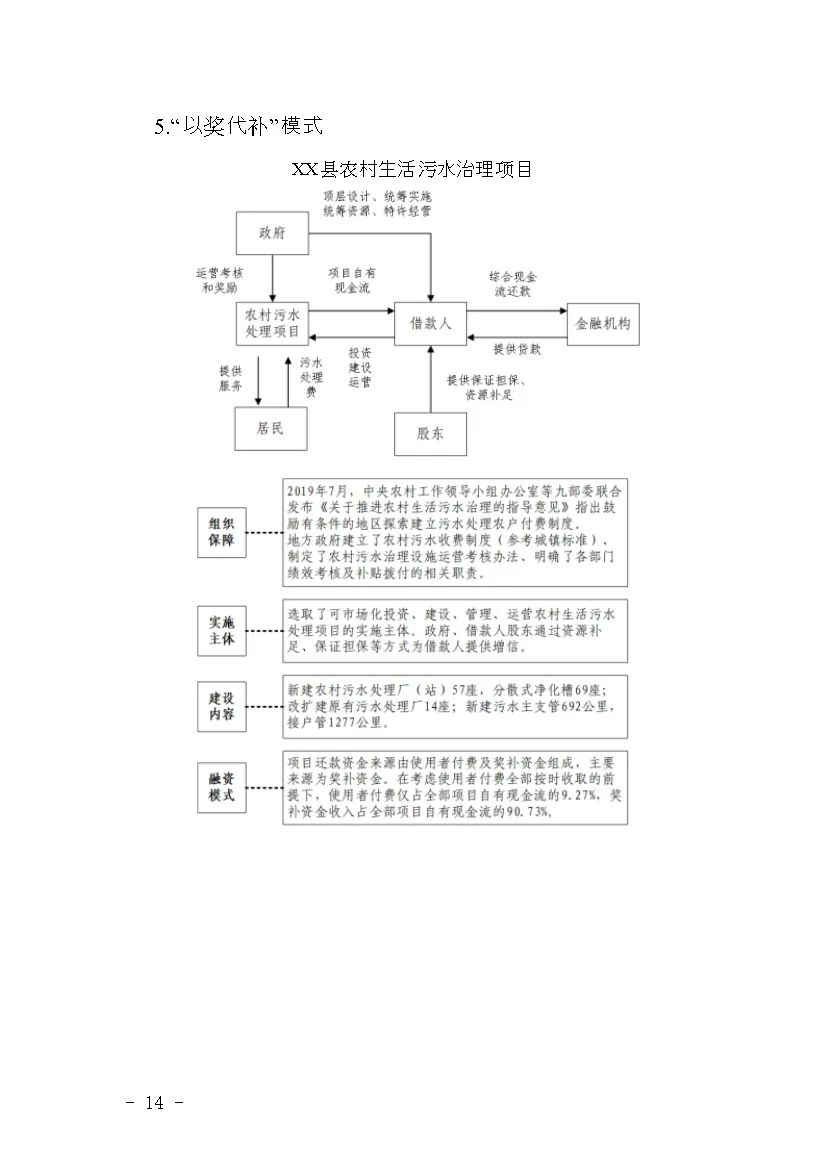 (五)多措并舉,創(chuàng)新模式。地方政府統(tǒng)籌安排,為符合條件的項(xiàng)目爭(zhēng)取多元化的資金,豐富項(xiàng)目資金籌措渠道。鼓勵(lì)支持市場(chǎng)化方式運(yùn)營(yíng)的項(xiàng)目,包含政府與社會(huì)資本合作(PPP)、特許經(jīng)營(yíng),以及環(huán)境綜合治理托管、環(huán)境污染第三方治理、生態(tài)環(huán)境導(dǎo)向的開發(fā)(EOD)等模式。