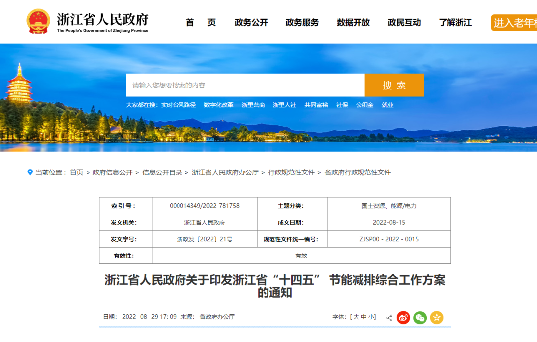 為切實做好我省“十四五”節(jié)能減排工作,根據(jù)《國務(wù)院關(guān)于印發(fā)“十四五”節(jié)能減排綜合工作方案的通知》(國發(fā)〔2021〕33號)要求,制定本方案。以習(xí)近平新時代中國特色社會主義思想為指導(dǎo),全面貫徹黨的十九大和十九屆歷次全會精神,深入踐行習(xí)近平生態(tài)文明思想,完整、準(zhǔn)確、全面貫徹新發(fā)展理念,堅決遏制高耗能高排放項目(以下稱“兩高”項目)盲目發(fā)展,完善能源消費強度和總量雙控(以下稱能耗雙控)制度,落實主要污染物排放總量控制制度,組織實施節(jié)能減排重點工程,確保完成“十四五”節(jié)能減排目標(biāo)任務(wù),實現(xiàn)減污降碳協(xié)同增效、生態(tài)環(huán)境質(zhì)量持續(xù)改善,為實現(xiàn)碳達(dá)峰碳中和階段性目標(biāo)奠定堅實基礎(chǔ)。節(jié)能減排政策機制更加健全。到2025年,全省單位生產(chǎn)總值能源消耗比2020年下降14.5%,能源消費總量得到合理控制,煤炭消費總量比2020年下降5%左右、控制在1.24億噸左右,氮氧化物、揮發(fā)性有機物、化學(xué)需氧量、氨氮重點工程減排量分別達(dá)到5.50萬噸、4.76萬噸、5.43萬噸、0.36萬噸。(一)工業(yè)節(jié)能降碳工程。開展新一輪制造業(yè)“騰籠換鳥、鳳凰涅槃”攻堅行動,全省淘汰落后產(chǎn)能企業(yè)和整治提升高耗低效企業(yè)15000家以上。以鋼鐵、建材、石化、化工、化纖、造紙、紡織等七大行業(yè)為重點,開展公共用能系統(tǒng)能效診斷,每年組織實施百個省級重點節(jié)能降碳技術(shù)改造項目。推進(jìn)鋼鐵、水泥、焦化行業(yè)超低排放改造,2025年全面完成鋼鐵、水泥超低排放改造。建立健全綠色低碳技術(shù)推廣機制,探索氫能冶煉及非高爐冶煉、二氧化碳捕集利用一體化等低碳技術(shù)應(yīng)用。實施涂裝類、化工類等產(chǎn)業(yè)集群分類治理,開展重點行業(yè)清潔生產(chǎn)和工業(yè)廢水資源化利用改造。拓展節(jié)能減排工作覆蓋面,開展數(shù)據(jù)中心能效提升行動,推進(jìn)景觀亮化工程節(jié)能?!笆奈濉睍r期,規(guī)上工業(yè)單位增加值能耗下降16%以上(扣除國家單列項目后),萬元工業(yè)增加值用水量下降18%。到2025年,力爭鋼鐵、建材、石化、化工、有色金屬等重點領(lǐng)域能效標(biāo)桿水平產(chǎn)能比例達(dá)到50%。(責(zé)任單位:省經(jīng)信廳、省發(fā)展改革委、省生態(tài)環(huán)境廳、省水利廳、省應(yīng)急管理廳、省市場監(jiān)管局、省能源局、省電力公司。列第一位的為牽頭單位,各市、縣〔市、區(qū)〕政府為責(zé)任主體,下同)(二)重大平臺節(jié)能環(huán)保提升工程。實現(xiàn)重大產(chǎn)業(yè)平臺能源系統(tǒng)整體優(yōu)化,全面實施區(qū)域能評改革2.0版,建立健全重大產(chǎn)業(yè)平臺區(qū)域能評事中事后監(jiān)管制度,定期發(fā)布重大產(chǎn)業(yè)平臺能效評估報告。實施園區(qū)綠色低碳發(fā)展提檔行動,推進(jìn)園區(qū)空間布局優(yōu)化、產(chǎn)業(yè)循環(huán)鏈接、資源高效利用、節(jié)能降碳改造。開展“污水零直排區(qū)”、清新園區(qū)和“無廢城市”建設(shè),推動揮發(fā)性有機物、電鍍廢水及特種污染物集中治理等“綠島”項目建設(shè)。到2025年,重大平臺區(qū)域能評覆蓋率達(dá)到100%,60%的省級以上開發(fā)區(qū)(園區(qū))建成清新園區(qū),所有設(shè)區(qū)市及60%的縣(市、區(qū))建成“無廢城市”。(責(zé)任單位:省發(fā)展改革委、省科技廳、省生態(tài)環(huán)境廳、省商務(wù)廳、省能源局)(三)城鎮(zhèn)建筑節(jié)能提升工程。全面貫徹城鎮(zhèn)建筑綠色低碳規(guī)劃、綠色設(shè)計、綠色施工管理的理念,推進(jìn)低碳城市、韌性城市、海綿城市建設(shè)。城鎮(zhèn)新建民用建筑全面實施低能耗建筑標(biāo)準(zhǔn),加快發(fā)展超低能耗建筑。穩(wěn)步推進(jìn)既有建筑節(jié)能改造。推進(jìn)可再生能源的建筑應(yīng)用。開展綠色高效制冷行動,更新升級制冷技術(shù)和設(shè)備,提升制冷系統(tǒng)能效水平。實施公共供水管網(wǎng)漏損治理工程。到2025年,城鎮(zhèn)新建公共建筑和居住建筑設(shè)計節(jié)能率提升至75%以上,全面執(zhí)行綠色建筑標(biāo)準(zhǔn)。(責(zé)任單位:省建設(shè)廳、省自然資源廳、省生態(tài)環(huán)境廳、省交通運輸廳、省機關(guān)事務(wù)局、省能源局)(四)交通物流節(jié)能減排工程。加快美麗公路、美麗航道、城鄉(xiāng)綠道網(wǎng)建設(shè),推進(jìn)充電樁等基礎(chǔ)設(shè)施建設(shè)。提高城市公交、出租、物流等交通車輛新能源化率,加強船舶清潔能源推廣應(yīng)用。積極應(yīng)用大數(shù)據(jù)優(yōu)化運輸組織方式,發(fā)展智能交通,推動大宗貨物和中長距離運輸“公轉(zhuǎn)水”“公轉(zhuǎn)鐵”,發(fā)展以“四港聯(lián)動”為核心的多式聯(lián)運。全面實施汽車國六排放標(biāo)準(zhǔn)和非道路移動柴油機械國四排放標(biāo)準(zhǔn),基本淘汰國三以下排放標(biāo)準(zhǔn)汽車,加快淘汰國四排放標(biāo)準(zhǔn)營運柴油貨車。深入實施清潔柴油機行動,鼓勵重型營運柴油貨車更新替代。實施汽車排放檢驗與維護制度。推進(jìn)港口岸電設(shè)施建設(shè)。加快綠色倉儲建設(shè),鼓勵建設(shè)綠色物流園區