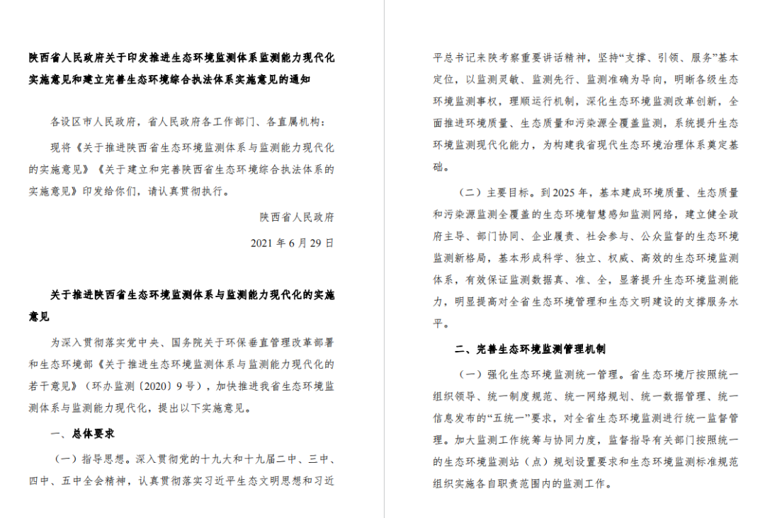 10、《陜西省人民政府關于印發(fā)推進生態(tài)環(huán)境監(jiān)測體系監(jiān)測能力現(xiàn)代化實施意見和建立完善生態(tài)環(huán)境綜合執(zhí)法體系實施意見的通知》