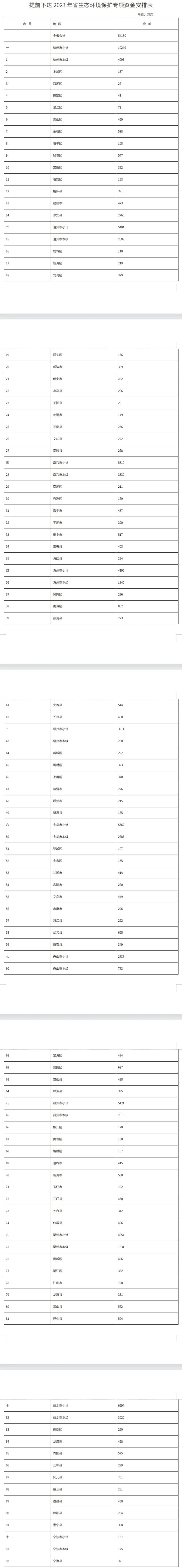 附件:提前下達(dá)2023年省生態(tài)環(huán)境保護(hù)專(zhuān)項(xiàng)資金安排表