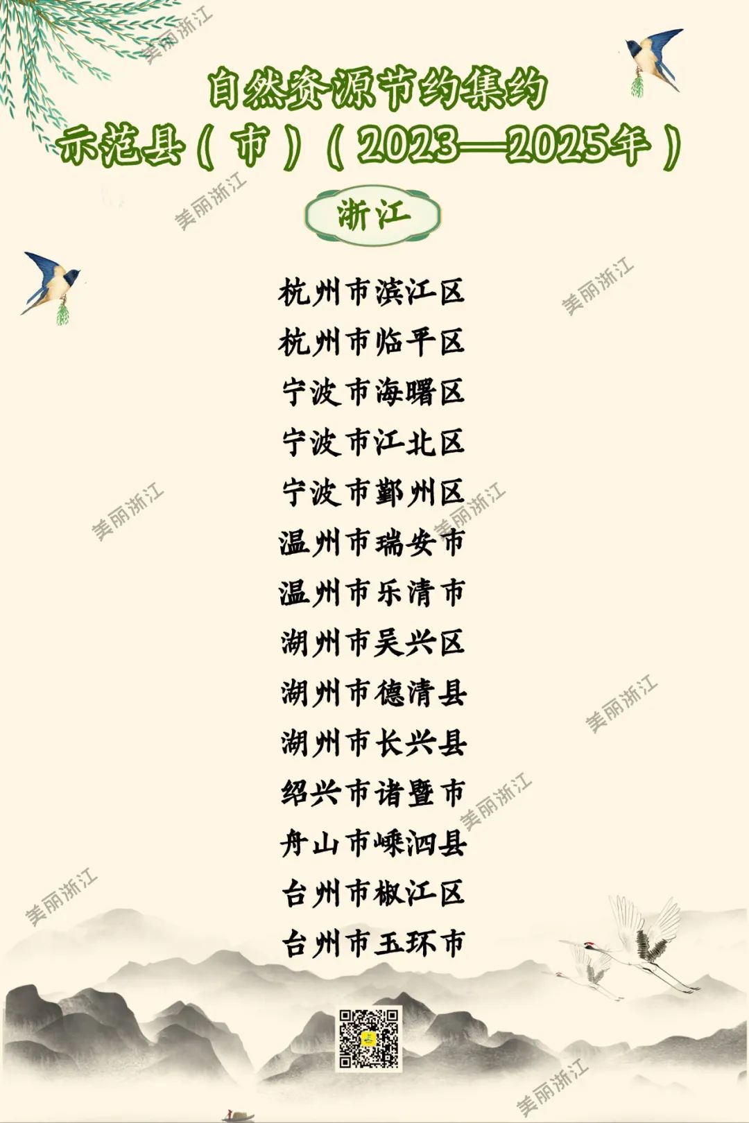近日,自然資源部印發(fā)通知,認(rèn)定北京市石景山區(qū)等258個(gè)縣(市)為首批自然資源節(jié)約集約示范縣(市),其中,浙江14地入選。創(chuàng)建示范期為2023年至2025年。