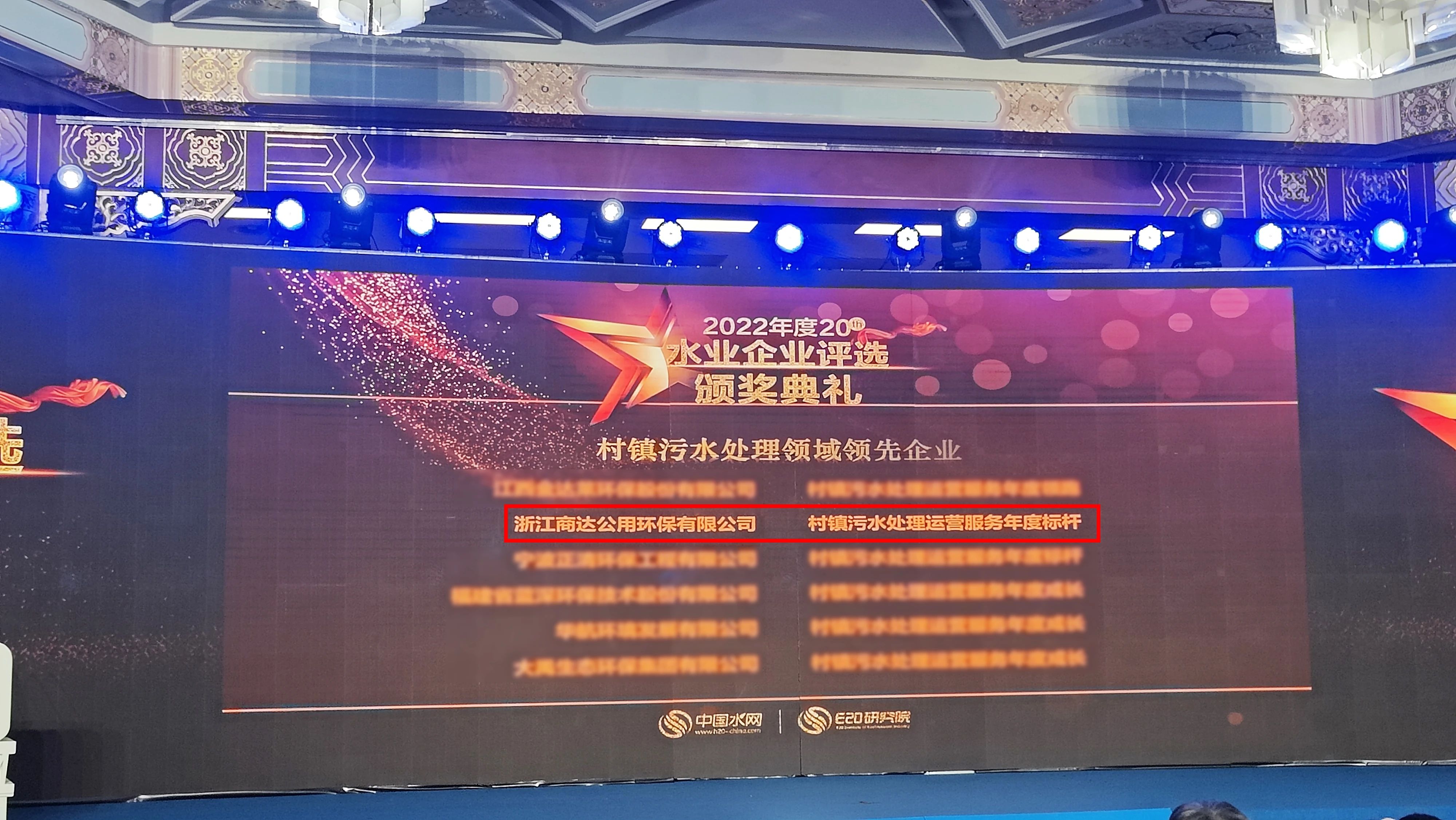 在水務行業(yè)進入“十四五”高質量發(fā)展的產(chǎn)業(yè)化階段的背景下,2022年度(第二十屆)水業(yè)企業(yè)評選隆重拉開帷幕,評選采用評選多維度、評委多元化、評選過程化、評選見面化、獎項個性化等形式,評選歷時近3個月,經(jīng)歷了企業(yè)申報、微信點贊、評審團評審等環(huán)節(jié),最終評選出11大水業(yè)榜單。商達公用入選E20水業(yè)企業(yè)評選“村鎮(zhèn)污水處理領域領先企業(yè)”榜單。