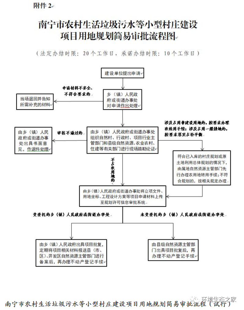 南寧市農(nóng)村生活垃圾污水等小型村莊建設(shè)項(xiàng)目用地規(guī)劃簡易審批流程(試行)