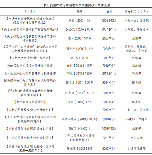 從21世紀(jì)初開始,國家層面發(fā)布了一系列關(guān)于農(nóng)村污水治理的政策文件,有力地推動了農(nóng)村污水治理事業(yè)的發(fā)展。