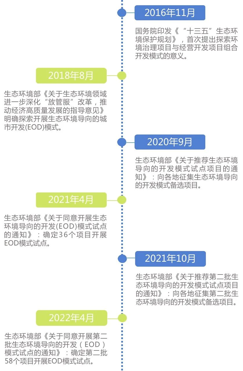 2018年,環(huán)境部開始提出EOD模式的倡議,此后,多部委陸續(xù)出臺(tái)EOD相關(guān)政策文件。
