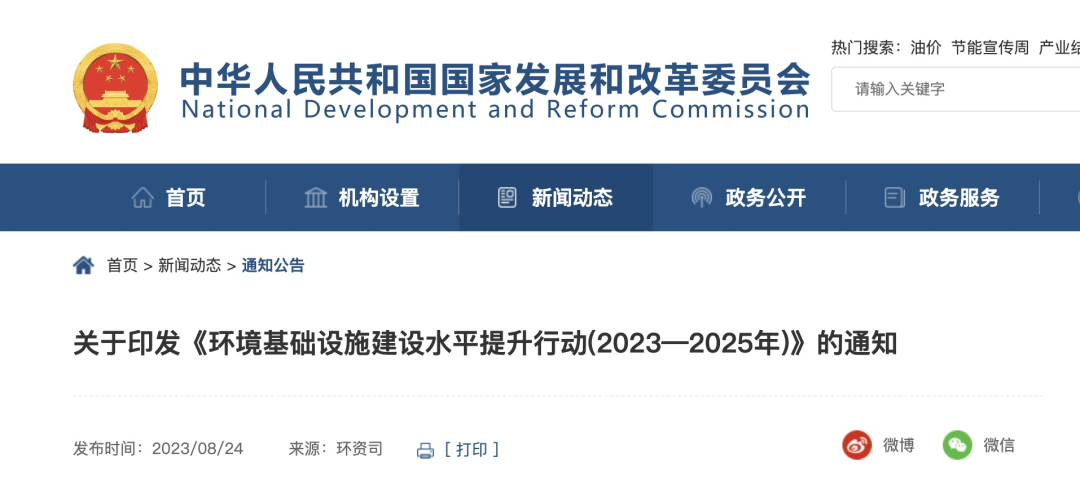 國家發(fā)展改革委等部門關(guān)于印發(fā)《環(huán)境基礎(chǔ)設(shè)施建設(shè)水平提升行動(2023—2025年)》的通知