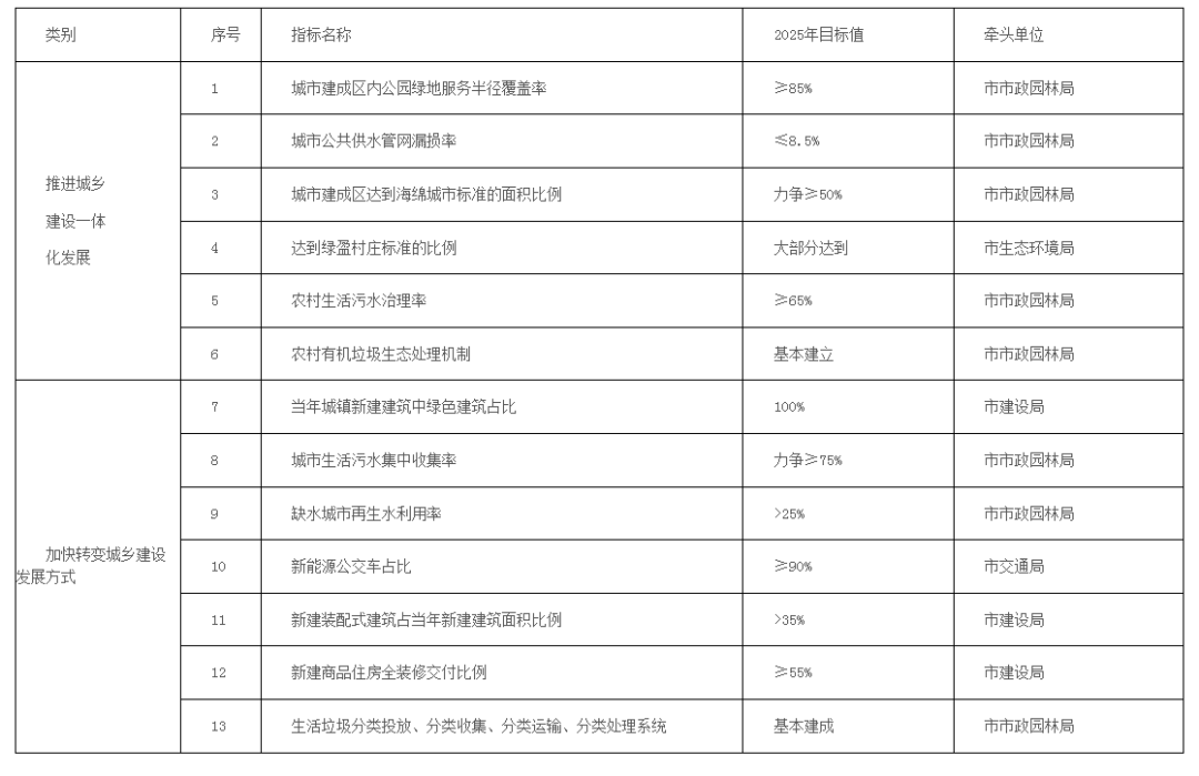 城鄉(xiāng)建設(shè)綠色發(fā)展主要指標(biāo)