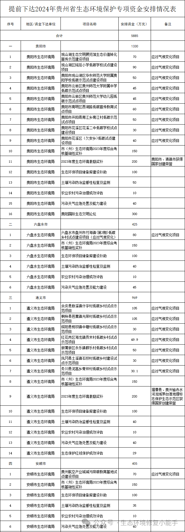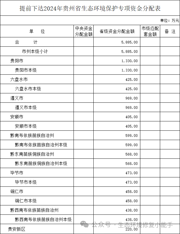附件:1.提前下達(dá)2024年貴州省生態(tài)環(huán)境保護(hù)專項(xiàng)資金分配表