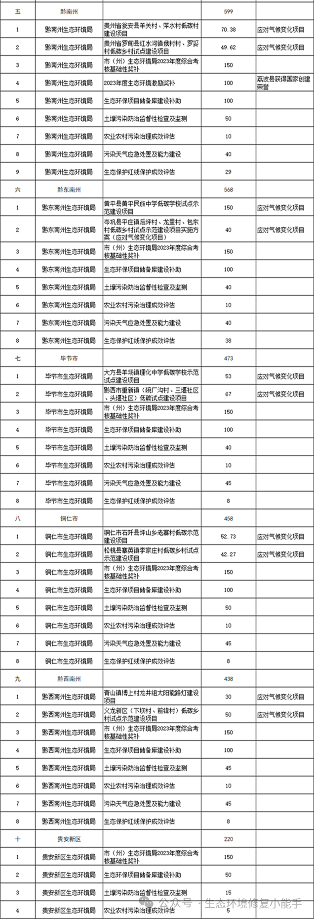 2.提前下達(dá)2024年貴州省生態(tài)環(huán)境保護(hù)專項(xiàng)資金安排情況表