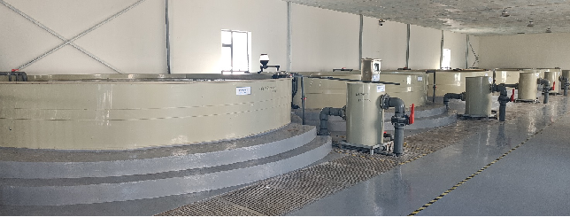 在江蘇宜興建立商達公用“碧水漁倉”示范基地,基地采用工廠化循環(huán)水養(yǎng)殖模式,具有標準化、高效化、綠色化、智慧化等特點。基地一共有6個PP陸基魚池,養(yǎng)殖水方300立方,預計年產量18噸。系統(tǒng)配置有自動水循環(huán)系統(tǒng)、增氧系統(tǒng)、純氧系統(tǒng)、排污系統(tǒng),水溫常年保持在25℃左右。通過環(huán)境參數(shù)采集、無線組網(wǎng)、智能控制、自動預警等,實現(xiàn)集約、高產、生態(tài)、安全養(yǎng)殖。