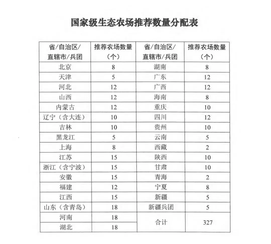 附件:1. 國家級生態(tài)農(nóng)場推薦數(shù)量分配表