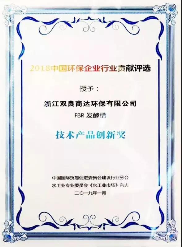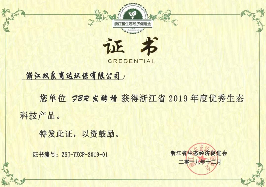 9、FBR發(fā)酵槽榮獲浙江省“2019年度優(yōu)秀科技生態(tài)產(chǎn)品”及村鎮(zhèn)環(huán)境聯(lián)盟“技術(shù)產(chǎn)品創(chuàng)新獎(jiǎng)”