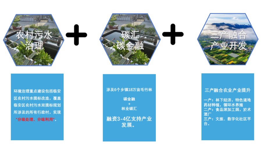 項(xiàng)目以生態(tài)環(huán)境為導(dǎo)向帶動(dòng)產(chǎn)業(yè)發(fā)展的理念,以“三產(chǎn)相融”農(nóng)村產(chǎn)業(yè)高質(zhì)量發(fā)展為載體,通過“分級(jí)處理、分級(jí)利用”實(shí)現(xiàn)污水資源化利用,促進(jìn)林業(yè)碳匯、生態(tài)農(nóng)業(yè)和農(nóng)旅康養(yǎng)等鄉(xiāng)村產(chǎn)業(yè)發(fā)展,助力臨安區(qū)打造高標(biāo)準(zhǔn)鄉(xiāng)村振興實(shí)踐案例,高質(zhì)量共同富裕示范樣板。
