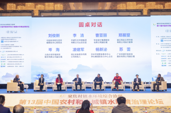 當(dāng)天下午,鄭展望教授作為嘉賓參加了主題為“2024村鎮(zhèn)污水處理行業(yè)如何共啟新篇”的圓桌對(duì)話,與各企業(yè)代表、專家針對(duì)村鎮(zhèn)污水行業(yè)目前面臨的難題與解決辦法、未來村鎮(zhèn)污水處理行業(yè)的發(fā)展方向等話題進(jìn)行深入交流探討并與臺(tái)下觀眾互動(dòng)。