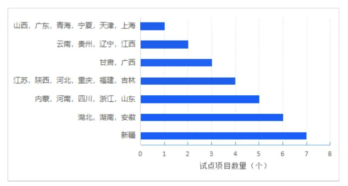 在2020年至2022年間,由生態(tài)環(huán)境部辦公廳、發(fā)展改革委辦公廳、國(guó)家開發(fā)銀行辦公廳聯(lián)合開展了兩輪EOD試點(diǎn)工作。從項(xiàng)目數(shù)量上看,2021年第一批試點(diǎn)項(xiàng)目只有36個(gè),2022年第二批增加至58個(gè),試點(diǎn)省級(jí)單位也由20個(gè)擴(kuò)大至26個(gè)。94個(gè)試點(diǎn)項(xiàng)目區(qū)域分布如下圖所示: