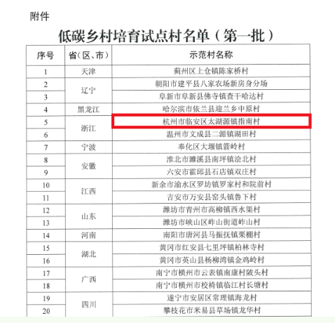 近日,農(nóng)業(yè)農(nóng)村部農(nóng)業(yè)生態(tài)與資源保護(hù)總站公布了第一批低碳鄉(xiāng)培育試點(diǎn)村名單,臨安區(qū)太湖源鎮(zhèn)指南村成功入選。