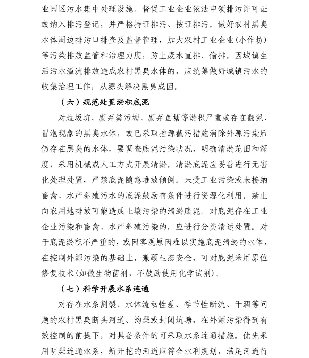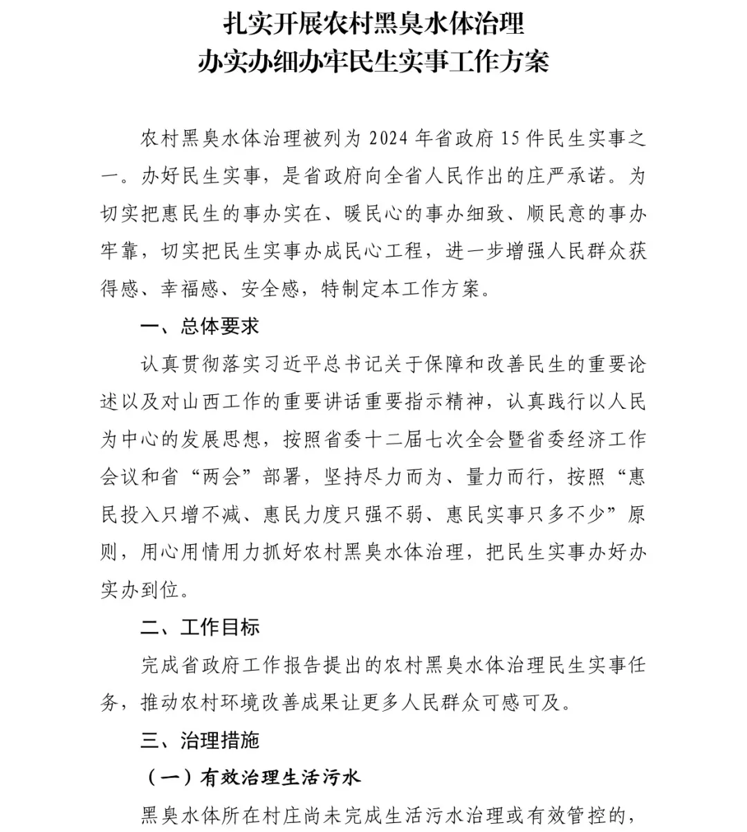 近日,山西印發(fā)《扎實(shí)開展農(nóng)村黑臭水體治理辦實(shí)辦細(xì)辦牢民生實(shí)事工作方案》,提出有效治理生活污水、清理整治村莊生活垃圾、依法防治畜禽養(yǎng)殖污染、綜合治理水產(chǎn)養(yǎng)殖及種植業(yè)污染、嚴(yán)格監(jiān)管農(nóng)村工業(yè)企業(yè)排污、規(guī)范處置淤積底泥、科學(xué)開展水系連通、合理實(shí)施生態(tài)修復(fù)等治理措施,最終達(dá)到水體不黑不臭、完成水體治理措施、建有長效管護(hù)機(jī)制、群眾滿意、公示無異議等標(biāo)準(zhǔn)。