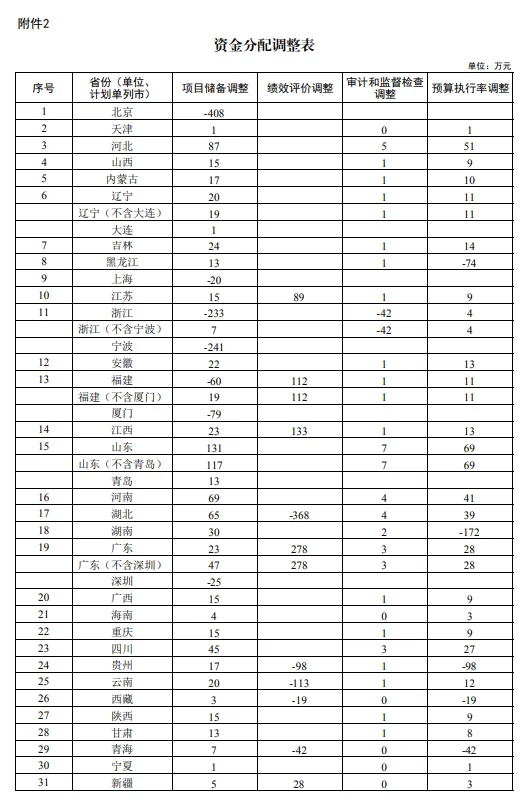 財(cái)政部關(guān)于下達(dá)2024年度大氣污染防治資金(第二批)預(yù)算的通知 財(cái)資環(huán)〔2024〕66號(hào)有關(guān)省、自治區(qū)、直轄市財(cái)政廳(局),新疆生產(chǎn)建設(shè)兵團(tuán)財(cái)政局: 為支持大氣污染防治工作,促進(jìn)大氣質(zhì)量改善,現(xiàn)下達(dá)你?。ㄗ灾螀^(qū)、直轄市、新疆生產(chǎn)建設(shè)兵團(tuán),以下簡稱省)2024年大氣污染防治資金,用于支持開展減污降碳等方面相關(guān)工作,并就有關(guān)事項(xiàng)通知如下: 一、各省安排金額見附件1,項(xiàng)目支出列2024年政府收支分類科目“211 節(jié)能環(huán)保支出”,項(xiàng)目代碼:10000014Z145060020001。 二、各省要按照《財(cái)政部關(guān)于修改<大氣污染防治資金管理辦法>的通知》(財(cái)資環(huán)〔2022〕106號(hào))等規(guī)定,加強(qiáng)資金管理,??顚S?,切實(shí)提高資金使用效益。按照“資金跟著項(xiàng)目走”的原則,做好項(xiàng)目儲(chǔ)備工作,盡快形成有效投資,避免“資金等項(xiàng)目”。對已從中央基建投資等其他渠道獲得中央財(cái)政資金支持的項(xiàng)目,不得納入防治資金支持范圍。 三、為進(jìn)一步加強(qiáng)預(yù)算績效管理,請按照《中共中央 國務(wù)院關(guān)于全面實(shí)施預(yù)算績效管理的意見》的要求,對照下達(dá)的績效目標(biāo)組織開展績效運(yùn)行監(jiān)控,做好績效評(píng)價(jià)。同時(shí),將你省績效目標(biāo)及時(shí)對下分解,分解下達(dá)績效目標(biāo)要同時(shí)抄送財(cái)政部有關(guān)監(jiān)管局。中央財(cái)政分配資金時(shí),根據(jù)各地項(xiàng)目儲(chǔ)備情況、績效評(píng)價(jià)結(jié)果、審計(jì)和監(jiān)督檢查結(jié)果、預(yù)算執(zhí)行率和資金分解下達(dá)情況對轉(zhuǎn)移支付作了適當(dāng)扣減,請你省在分配資金時(shí),比照中央財(cái)政的做法,加強(qiáng)績效評(píng)價(jià)結(jié)果應(yīng)用,突出獎(jiǎng)優(yōu)罰劣,切實(shí)提高財(cái)政資金效益。 財(cái)政部關(guān)于下達(dá)2024年農(nóng)村環(huán)境整治資金(第二批)預(yù)算的通知財(cái)資環(huán)〔2024〕64號(hào) 各省、自治區(qū)、直轄市、計(jì)劃單列市財(cái)政廳(局),新疆生產(chǎn)建設(shè)兵團(tuán)財(cái)政局: 為促進(jìn)農(nóng)村生態(tài)環(huán)境質(zhì)量改善,加快推進(jìn)農(nóng)村環(huán)境整治工作,現(xiàn)下達(dá)你?。ㄗ灾螀^(qū)、直轄市及新疆生產(chǎn)建設(shè)兵團(tuán),以下統(tǒng)稱?。?024年農(nóng)村環(huán)境整治資金(第二批),并就有關(guān)事項(xiàng)通知如下: 一、各省安排金額見附件1,項(xiàng)目代碼:10000017Z175060020003,支出列2024年政府收支分類科目“211節(jié)能環(huán)保支出”。 二、資金分配突出獎(jiǎng)優(yōu)罰劣原則。對績效評(píng)價(jià)結(jié)果排名靠后的相關(guān)省扣減資金,相應(yīng)獎(jiǎng)勵(lì)結(jié)果排名靠前的??;對資金執(zhí)行率靠后以及監(jiān)督檢查存在問題的相關(guān)省扣減資金,獎(jiǎng)勵(lì)給其他省,詳見附件2。 三、請按照《財(cái)政部關(guān)于印發(fā)<農(nóng)村環(huán)境整治資金管理辦法>的通知》(財(cái)資環(huán)〔2021〕43號(hào))等有關(guān)要求,將資金預(yù)算盡快落實(shí)到具體項(xiàng)目,切實(shí)提高資金使用效益。對已從中央基建投資等其他渠道獲得中央財(cái)政資金支持的項(xiàng)目,不得納入資金支持范圍。 四、本次下達(dá)資金包含2024年農(nóng)村黑臭水體治理試點(diǎn)資金額度的70%。請進(jìn)一步加強(qiáng)項(xiàng)目管理,抓緊推動(dòng)農(nóng)村黑臭水體治理工作,強(qiáng)化試點(diǎn)全過程監(jiān)管和實(shí)施情況調(diào)度,切實(shí)提高項(xiàng)目進(jìn)度和預(yù)算執(zhí)行率。項(xiàng)目實(shí)施過程中重大問題及時(shí)上報(bào)。