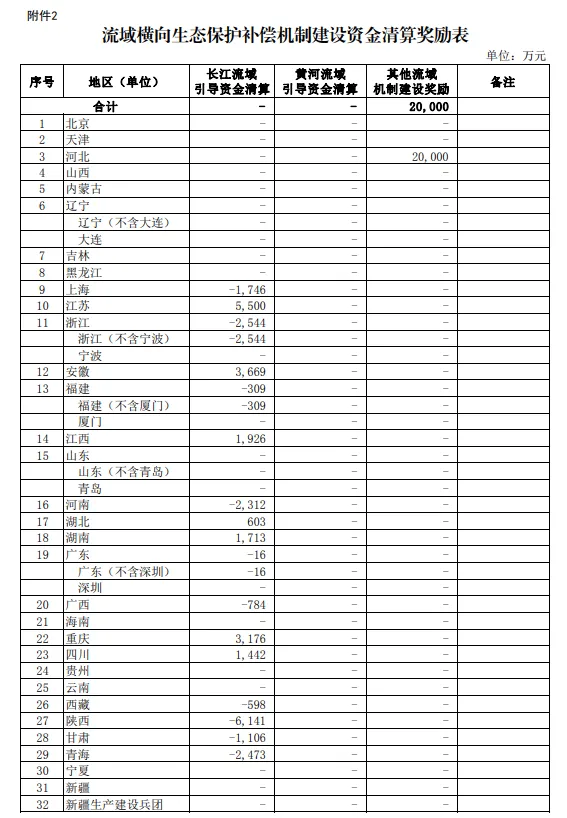 2.流域橫向生態(tài)保護(hù)補(bǔ)償機(jī)制建設(shè)資金清算獎(jiǎng)勵(lì)表