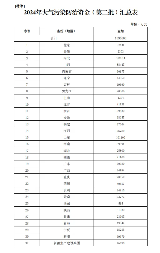 最近,2024年水污染防治、大氣污染防治、農(nóng)村環(huán)境整治等資金預(yù)算也陸續(xù)下達(dá),這三筆預(yù)算分別為87億、109億和20億,具體如下: